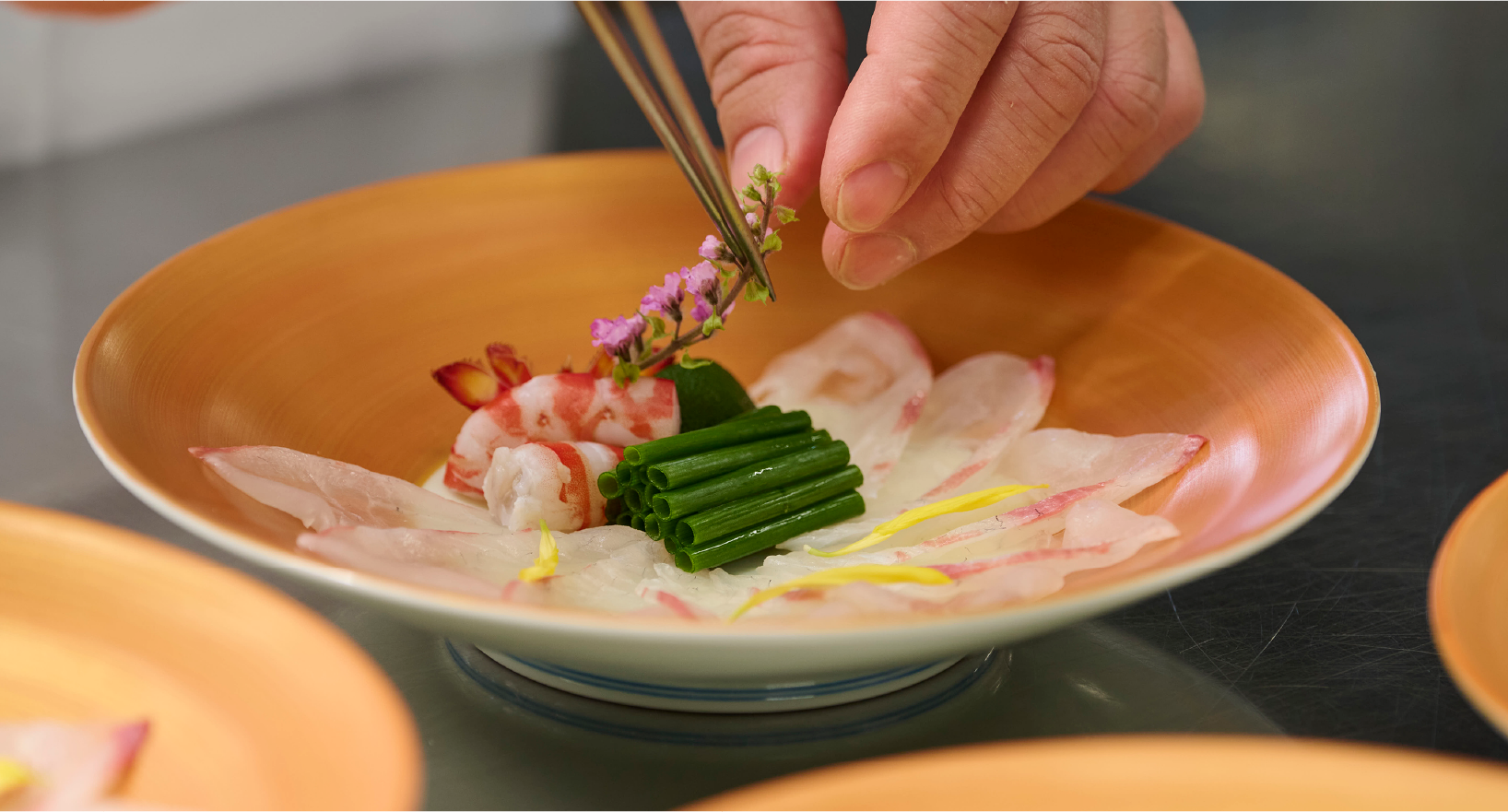 旬にこだわり、創意と工夫を凝らした味わい。お食事はすべて、館内の直営厨房で プロの調理人がおつくりします。
