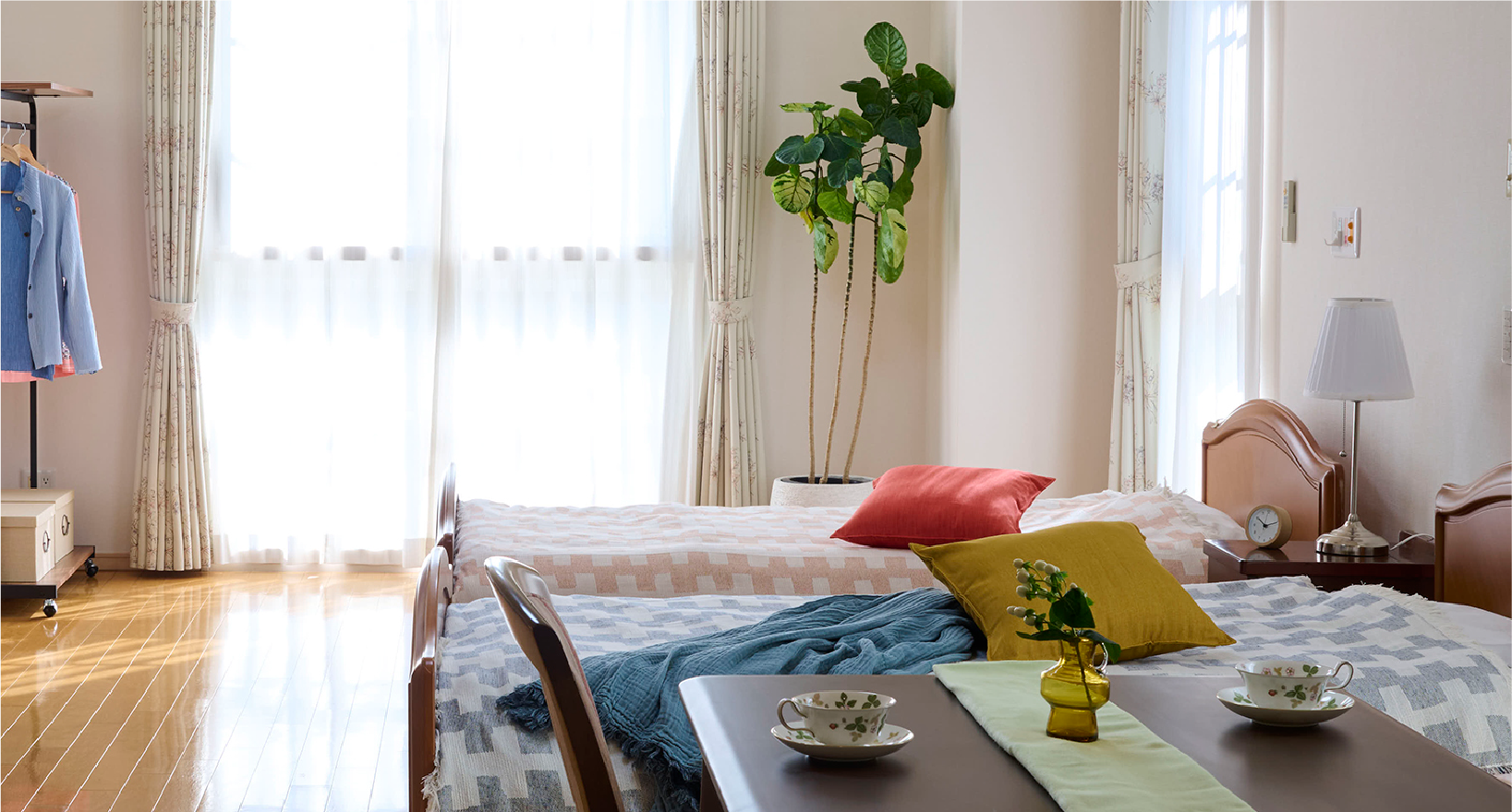 介護にあたる人員は、ご入居者3名に対して看護・介護スタッフを2名配置。 さらに、一人ひとりに担当者を選任します。
